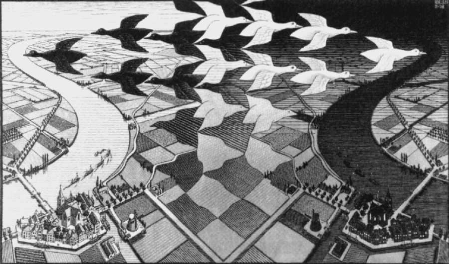 Day-Night--M.C. Escher, 1953 (Click to see full size)